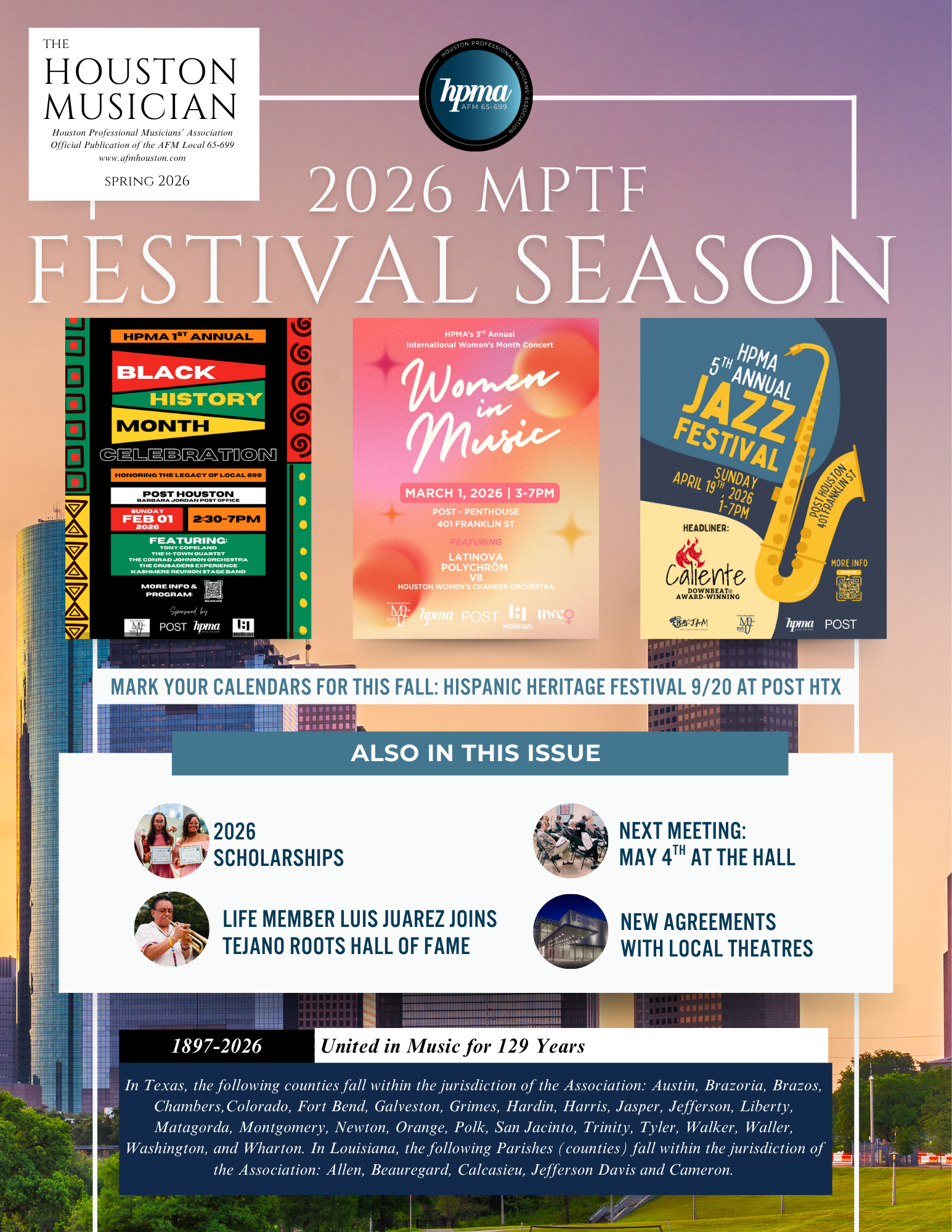 Welcome to the Houston Professionals Musicians Association, your connection to the music and the musicians of Southeast Texas and Southwest Louisiana. Our members have a purpose that is singular and common to serve the professional musicians and the musical need of our communities.